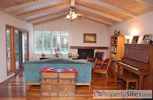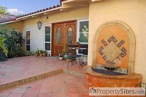 Complete info: http://1473caminorioverde.iHouseNet.com - Enter though a tiled courtyard w/flowering plants a lovely fountain. The living room w/soaring ceilings, hardwood flrs, fireplace & lrg windows overlooking huge backyard & patio. Arched doorways, tiled flrs, lrg master ste w/cathedral ceilings, remodeled bath, newer windows & doors.