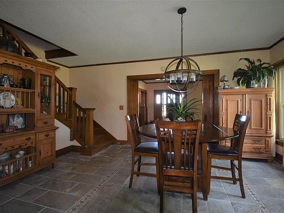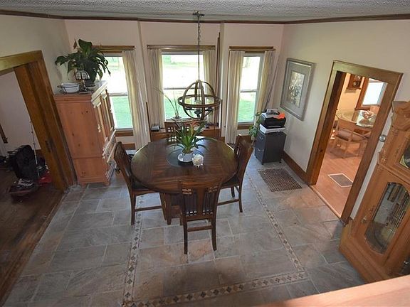 Country home on 5 acres more/less w/shop and concrete floor, wood burning stove. Bungalow style home with front porch, back porch, beautiful wood flooring, wood mop boards, built in cabinetry, pocket doors and sharp staircase. Kitchen with the newer high end appliances, eat in small breakfast nook, formal dining area. Spacious living room and family room. Large bedroom on the main level with a walk in shower, and laundry room with a farm sink. Upstairs, 4 bedrooms, one with a bonus room, sunroom. 2nd bath upstairs and small staircase that leads to the back enclosed porch. Super cute loft area above the one car garage, great for guest room, play room, etc. Owners replaced 33 new Woodridge lifetime windows, this past spring. New Central heating unit, fall of 2019. New Heritage roof, gutters and screens summer of 2020. New water heater in 2019. New sewer line to the septic tank, some new plumbing as well. Easement across road for septic.