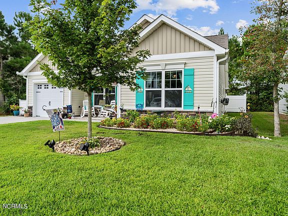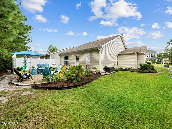 Drop your anchor at this coastal paradise! This 3br/2bth by Hawks Nest Builders has been lavishly updated & is turn-key ready for new owners as primary, secondary or investment home. Upgrades to this 2 year young home include LVP flooring throughout, fully remodeled 2nd bathroom with stunning composite step-in shower, decorative shiplapped walls & bowl sink, Spanish tile kitchen backsplash, window shades, as well as a complete decorative lighting makeover with ceiling fans & nautical themes. A rocking chair covered front porch greets you as you make your way into the living room with vaulted ceiling & plenty of space to relax. The open floor plan continues into a dining space followed by the chef's kitchen with granite peninsula & everything you need for cuisine preparation & entertaining including refrigerator, microwave, dishwasher, disposal, pantry & additional bump out space for coffee or wine bar. The owner's bedroom is at the rear of the home featuring vaulted ceiling, ensuite bathroom with step in shower & sliding door, double sink, linen closet, & walk in closet. Two additional bedrooms are at the front of the home perfect for guests/family or to work from home as an office space. The laundry room with an upgraded sink is the perfect mudroom between the home & single car garage with options for stackable machines & storage or side by side units. Outside you'll find upgrades as well including irrigation, privacy fence, perennial garden beds, pebbled fire pit patio, double parking pad & more. New South Bridge is an amenity rich neighborhood with a clubhouse, pool, par 3 golf course (free to play with your HOA dues!), RV/boat storage, nature path & a community calendar full of events for people of all ages! Great location too! Virginia Williamson Elementary & Classical Charter School of Southport are minutes away & only 11 miles to the beach at Oak Island! Other destinations nearby include historic downtown Southport, Holden Beach, Shallotte, Leland,
