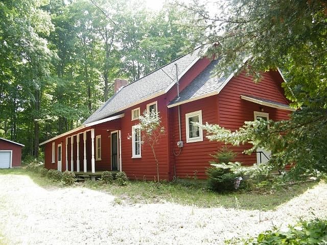 CLASSIC TURN OF THE CENTURY SCHOOL HOUSE TRANSFORMED INTO CHARMING HOME! The appeal of yesteryear still prevails. Updating includes new roof & chimney, electric, freshly painted, plumbing, well, septic, insulation, new wood stove w/blower which is currently only heat source. Features beamed vaulted ceilings, upstairs loft w/bathroom, some original bookcase cabinetry, covered side porch, original front porch & large (28x36) newer garage all scenic wooded 1 acre parcel on quiet paved country road near Bellaire, Alden & mancelona. Great value!