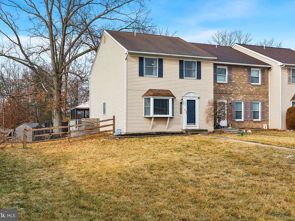 This tastefully updated end-unit townhome is located in the desirable Lexington Farms community and is truly move-in ready. Featuring 3 bedrooms and 1.5 bathrooms, this home offers modern upgrades and thoughtful design throughout. The main level welcomes you with a spacious flex room, perfect for a formal dining room or additional living space. Hardwood floors lead you to the beautifully updated kitchen, which boasts quartz countertops, herringbone tile floors, stainless steel appliances, and a pantry. Adjacent to the kitchen, the inviting family room with shiplap accents opens to a deck with a gazebo and a fenced-in backyard, creating the perfect space for entertaining or relaxing. Upstairs, the large primary bedroom features two closets, including a walk-in closet with built-in organizers. Two additional spacious bedrooms and an updated bathroom complete the second level. The bright, semi-finished basement provides additional living space, ideal for a recreation room or home gym. Conveniently located near shopping, restaurants, Route 309, County Line Road, and just steps from Frick’s Trail, this home offers the added benefit of no HOA!