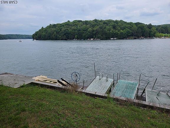 Beautiful lakefront home with amazing views of Indian Lake. This home features 3 spacious master bedrooms each with its own master bath. All bathrooms are in the process of being updated. Tons of closets and storage space! First floor features an open kitchen/dining room, living room with wood burning fireplace, beautiful vaulted ceilings and a master en suite. Walk up to the second floor with 2 more master suites complete with walk out balconies. Basement has 3 sets of sliding glass doors perfect for viewing the lake. Basement also features a wood burning fireplace, full bath, laundry room, wet bar and game room. Mini splits were installed in 2019. This home features 100 feet of lake frontage with floating docks. Home is being sold AS-IS.