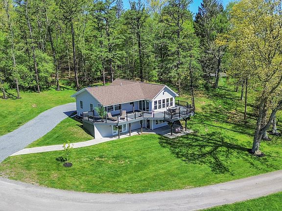 TIME TO UNWIND at this absolutely stunning Deep Creek Lake retreat boasting million-dollar panoramic views and private lake access! This fully furnished, meticulously renovated 4-bedroom, 2-bath raised rancher is the ultimate escape—perfect for weekend getaways, full-time living, or a savvy investment—sited on 2 pristine acres in the highly sought-after Pergin Farm community, a peaceful peninsula at the far end of Deep Creek Lake known for its tranquility and reduced seasonal boat traffic. Enjoy the best of all seasons at Deep Creek Lake—a true year-round resort destination offering boating, fishing, hiking, skiing, dining, and more just minutes from your door. Step outside and take in the beauty from your brand-new 900+ sq ft wraparound Trex composite deck with show-stopping lake and mountain views. This property includes a private, separately deeded boat slip at the community dock and easy access to the water by foot or ATV. The main level open floor plan is ideal for entertaining, featuring a fully updated kitchen with all-new cabinetry, luxury vinyl plank flooring, ceramic tile backsplash, butcher block island, stainless steel appliances (including farmhouse sink and range hood), pantry, recessed lighting, and sliding glass door with built-in blinds leading to the deck. Relax in the cozy family room showcasing a stone-accented gas fireplace, cathedral knotty pine ceilings with exposed beams, oversized windows framing the view, and a 3-panel sliding door opening to the deck. The primary bedroom offers upgraded carpet, a ceiling fan, knotty pine ceilings, and direct lake views. An updated full bath with dual access and a second spacious bedroom complete the main level. The finished lower level features two additional bedrooms, an updated full bath, laundry area, expansive recreation room with a built-in wet bar, and walkout access to a 17'x15' patio with porch swing—perfect for summer evenings and stargazing. Other highlights include: NEW architectural shingle roof, vinyl siding, soffit, and gutters Expanded gravel driveway and fire pit area Extra gas lines for outdoor grilling/fire pits High-speed underground cable and internet Dockside picnic area and seating All just minutes to McHenry’s year-round attractions—ski slopes, lakefront restaurants, nightlife, shops—and nearby downtown Oakland for antiques, dining, and nature escapes like Swallow Falls State Park. Truly a must-see, move-in-ready home in the heart of Deep Creek Lake. Click the ‘Movie’ icon on the listing for a 3D tour and walk-through video.