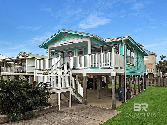 Introducing Sweet Pea's Dream! This charming raised beach cottage boasts two bedrooms and ample space, making it an ideal choice for a primary residence, secondary home, or lucrative vacation rental investment. Recently upgraded with premium luxury vinyl plank flooring, modern furnishings, stylish décor, and smart TVs, every corner exudes comfort and relaxation.Step into an inviting open floor plan encompassing a cozy living room, generous dining area, and a well-appointed kitchen, perfect for entertaining or unwinding after a day of beach adventures. The master bedroom offers a luxurious King-sized bed and a Smart TV for ultimate convenience. Meanwhile, the second bedroom features custom double Queen bunk beds and double Twin XL bunk beds, each equipped with a wall-mounted Smart TV, ensuring everyone's comfort and entertainment needs are met.Take advantage of the expansive balcony accessible from both bedrooms, ideal for enjoying your morning coffee with stunning sunrise vistas or winding down with breathtaking sunset views. Sweet Pea's Dream also provides covered parking for two vehicles and features decks on both the front and back of the house, offering idyllic spots to soak in the refreshing sea breeze.Situated just a short stroll from the beach and Little Lagoon, and a quick drive from Gulf Shores finest dining and shopping destinations, this property promises the ultimate coastal lifestyle without any HOA fees. Offered fully furnished and move-in ready, this adorable 2-bedroom, 2-bathroom retreat invites you to experience your own slice of paradise at an unbeatable value.Video & 3D Tours Available*Contingent on Sale Offer Accepted-Sellers are open to backup offers