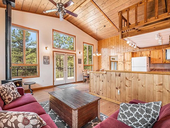 Gorgeous private home in the Retreat. Large deck with tons of south-facing windows. Forget your worries in this spacious and serene space. Spread out in three bedrooms (master plus two additional bedrooms), two lofts, full kitchen, full laundry room, two living areas, plus a full detached garage on two acres. Wood stove and electric heating. Water is from well and cistern. Cozy, quiet, and rejuvenating. Twenty minutes to Estes Park for entertainment, recreation, restaurants and shops. Renter is responsible for electricity and trash service. No smoking. Plenty of on-site parking for vehicles. Must read, confirm understanding of, and abide by all Retreat Landowners Association covenants, bylaws and policies.