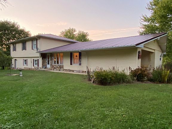 This Tri-Level home is sitting on 5.77 acres; it has 4 bedrooms, 3.5 bathrooms, very large family room with a nice stone fireplace with Buck insert, the formal living room has a stone fireplace with gas logs, the kitchen has an island with sink in it, all kitchen appliances stay as well as the washer and dryer; the dining room extends from the kitchen; This home has central vacuum through out; This home is HANDICAP ACCESS with an Acorn stair lift, heat pump, city water; circle driveway; septic system; 2 barns o property, work shop, large storage shed and playhouse stay with this home; attached carport; beauty shop off from carport or could be converted to a mother in law suite; fruit trees on this property draws deer to watch in the yard; underground utilities to home; new metal roof 2020.