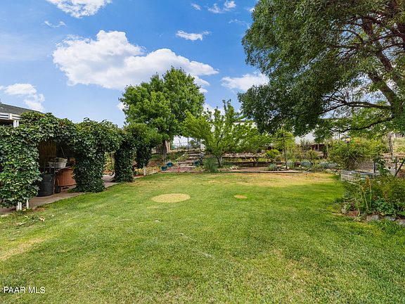 Country living with an Amazing view!3 bed, 2 1/2 bath, add'l game room, pool table, wood stove, office w/desk, emergency storage closet, cute kitchen, plant shelves, bay window, special lighting, sky light, kenmore frig,dining area opens into living room, vaulted ceiling, brick fireplace w/rod iron doors, glass cube window, natural lighting, spot light display shelving, sky light, security doors, vertical wood wall hallway, full bath, mosaic bowl sink, skylight, bd1 built in closet shelving, master mirror closet, full bath, dual sink, marble counter, fenced backyard w/ luscious grass, mature trees, fig, maple, grape vines, garden beds of turmeric, jasmine, dripline system, hot tub, good well with 2500 gal storage tank, barn with stalls, chicken coop, RV-toys parking WELCOME HOME!