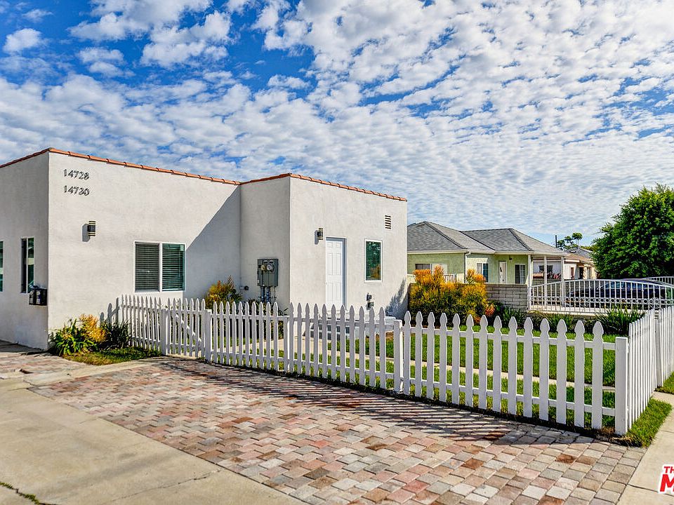 Welcome to this move in ready Spanish-style home for lease in Lawndale. This is the front unit of a fully detached duplex that shares no walls with the other unit. This 2-bedroom, 1-bathroom gem offers 732 sq. ft. of comfortable living space as it features beautiful hardwood floors throughout, a spacious primary bedroom, a remodeled kitchen and bathroom, in unit laundry, parking, and A/C. The kitchen features brand new appliances and offers an abundant amount of storage space, making it as functional as it is stylish. Adjacent to the kitchen is where you'll find the in unit laundry with a brand new washer and dryer. The bathroom offers a large vanity as well as a tub shower combo. Both bedrooms feature mirrored closet doors and are bathed in natural light. Step outside to your large private fenced front yard, perfect for relaxing or entertaining. There's also one off-street parking space in the driveway dedicated to the unit. Located just 15 minutes to the beach, 8 minutes to Manhattan Village, and 3 minutes to the freeway, this home puts you close to everything the South Bay has to offer.