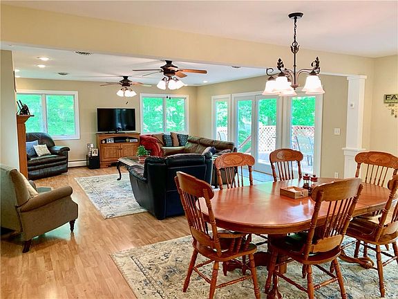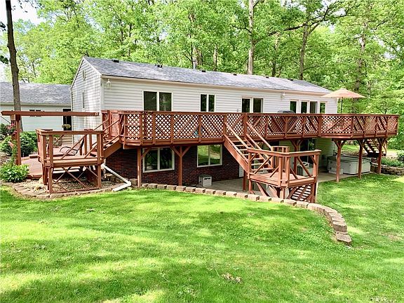 Beautiful 4 Bedroom 2 Bath Lake home on large landscaped lot. Perfect for entertaining or just enjoying the great view, the dining room, kitchen, and living room offer an open floor plan on the main level, or make your way to the large wood deck from the living room to relax and enjoy the summer evenings. Has a 3 zoned baseboard heat system, new AC and roof in 2018. The walkout basement leads to a larger patio with hot tub and a great view of the lake. There is a 12'x12' storage shed behind the 2 car detached garage with concrete floor and roll up door. The single slip boat dock offers a boat house with electric, serving door, and refrigerator, boat hoist, and steel sea wall. You don't want to miss out on this year round lake home at a great price so call for your private showing today.