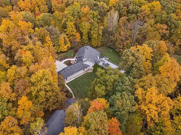 Follow the long and winding driveway to your own private oasis located on 9.6 acres in top-rated Northwest Allen County schools⦠Quality, custom-built by Rish, Inc., 4 BR/5BA contemporary ranch, on full finished, walk-out lower level, nestled on 9.6 acres, w/fabulous 40x30 1.5-story outbuilding, private pond and trails, and an impeccable inground pool. You'll love the 2000+sq. ft multi-tier deck that runs the full length of the house with built-in firepit, generous side yard and natural pond, just a few steps away. Bathed in natural sunlight, the main floor boasts an airy, open floor plan with a generous kitchen/hearth room, sun porch, main floor ensuite w/tile walk-in shower, office/den (could be a 5th BR) and views galore from every room of natureâs paradise. Serene and secluded, yet close to schools, shopping, hospitals and restaurants. The luxury finished lower level with open, wide stairway, was designed for living and entertaining, featuring 2 bedrooms sharing a Jack ân Jill bath, game room, family room, custom wet bar (w/full fridge), and slider access to the in-ground pool w/automatic cover and separate geothermal heat. Storage galore, home is wired for sound system, has a central vac system, attached 3-car garage w/bump-out, lush grounds, mature trees.