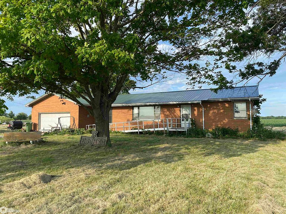 Tons of potential is what you'll find in this fixer upper located on a hard surface road just 5 miles north of Burlington. Currently this home is a 2 bedroom but could easily become a 3 bedroom once again. Beautiful stone fireplace. Single level living with an attached 2 car garage. Bonus sunroom offers a space for a game room, extra storage or another garage space. This all electric home is situated on 2.33 acres and includes 2 machine sheds 28x52 & 28x70. The possibilities are endless! Bring your imagination and your tool belt! Selling in as-is condition.