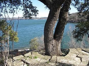 Waterfront- Deeded 4 slip boat dock in deep water cove. Approximatley 1.18 acre buildable land above 722'. Panoramic views of Lake Travis. Several acres of TX native trees: including Magnolia, Black Walnut, Peach, etc... A rare find ~ In the Hornsby family since 1947! Easy to Show!