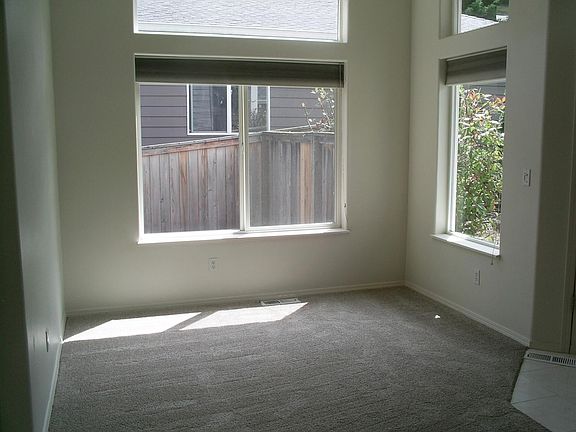 Our Mascord home has 3 bedrooms and 2 baths with forced air heat and AC. A gas fireplace is in the great room. It is a single level home with lots of windows which make it feel light and airy and has just been redecorated. It has a master bedroom with en suite bathroom which connects to a walk-in closet. Large flat beautiful yard on over-sized private lot which includes raised garden boxes and is within walking distance to Snyder Park. There is a full length back patio to spread out on. It mostly has 10.5 foot ceilings with double beamed vaulted great room and a two car garage with flat driveway. It is close to both Tualatin and Wilsonville while Sherwood is a safe town to live in. The home has formal dining space, great room, nook in kitchen and a utility area. Property has 10-12 foot side space from neighbor's homes with sidewalk on one side connecting to patio giving the space an open air feeling. Tenants are responsible for all utilities. Tenants will have renter's insurance. Tenants will abide by CCR's and be considerate with your neighbors. Vehicles are not to be repaired at the home. No RV or boat parked in street or on property. Move in costs are 1st month's rent and half of last month's rent with a $2,000 deposit. Tenants will have autopay for rent and water/sewer.