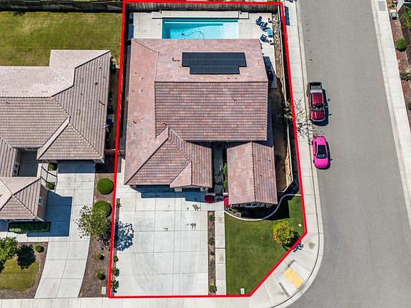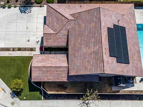 Luxury in Tuscany! Boasting 5 bdrms, 3 baths, spacious great room, this property provides space for large families and entertaining. The upstairs suite/loft, complete with a bedroom and full bath, serves as the perfect retreat for guests, multi-generational living, or a game room/sports cave. Home features whole house fan, multi zoned AC, OWNED SOLAR, 3 car garage w/ EV plug, feature wall w/ SONOS soundbar/fireplace and 73' TV. The open kitchen is a chef's delight w/ double oven, granite countertops, farmhouse sink, and an island. Elegant wood-look tile floors throughout the downstairs w/ split-wing design and wood tread stairs. The main hall bath offers dual sinks and another 1/2 bath to allow for extra privacy/guests. Two master bedroom closets provide ample storage space, and a glass door leads to the refreshing salt water pool w/ LED lighting and waterfall. Updates in 2022 include flooring, backsplash, paint, fans, toilets and more!! Don't miss this opportunity!