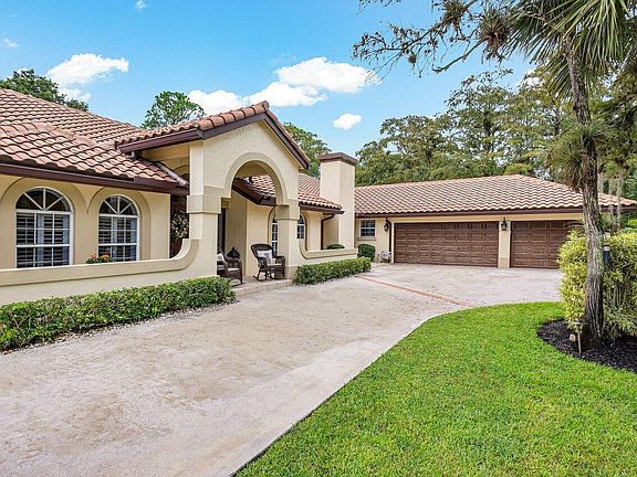 This expansive Paddock Park property sits on a 1.5-acre corner lot encased with lush and private clusia hedges and a massive circular driveway with access to both Stirrup Lane and Morgan Close. As you walk towards the elegant double door entry, you will be greeted with a quaint front porch with rockers to relax and listen to the chirps of the morning birds. Inside this beautiful home, you will find a family friendly split floorplan with a comfortable and stylish coastal chic vibe. The kitchen and bathrooms were renovated with tastefully refined finishes and increased functionality. The spacious screened in pool and patio double the enjoyable living space of the home with lounging, dining, entertaining and sunbathing areas. The detached finished garage offers a large multi-purpose living space which can be used as a 5th bedroom, theatre room, or game room and also has a 1/2 bathroom inside. The options for this 1.5 acre property are limitless. There is room for boat/RV storage with a large access gate from the cul de sac. The exquisitely manicured lawn is complete with color-changing landscape lighting to illuminate and showcase the entire exterior, including the firepit lounging area. Architectural plans for an additional 2,096 sf Guest House have been completed and surveyed. These renderings include a 3-bedroom, 2-bath home with a 2-car garage, workshop, covered porches on both front and back, as well as its own laundry room. Once completed, this addition will PERFECT this multi-million dollar compound and will provide potential for either rental income or a self-serving private home for friends/family members to stay. Don't miss this gem...it is priced to SELL and surrounded by multiple properties worth $3,000,000+.