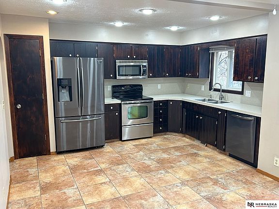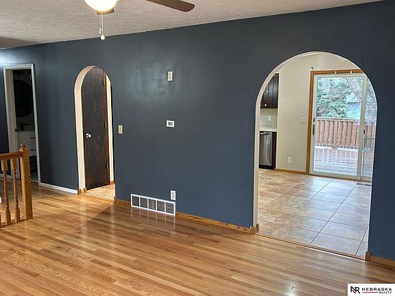 Explore this well-maintained split-level home featuring 3 bedrooms, 2 bathrooms (with a rough-in in the basement), and a 2-car garage. Inside, you'll find a cozy fireplace, a spacious eat-in kitchen (All stainless kitchen appliances stay.), and hardwood floors throughout the main living areas. The updated main bathroom and newer carpeting in the basement add to the comfort of this home. A.C. = 2014, Furnace = 2020, and roof (Shingles) to be replaced. Step outside to a fenced backyard that backs onto a walking trail, providing a peaceful retreat. Conveniently located near Walnut Grove Park, this home offers a variety of amenities. Millard Schools. Schedule a showing today!