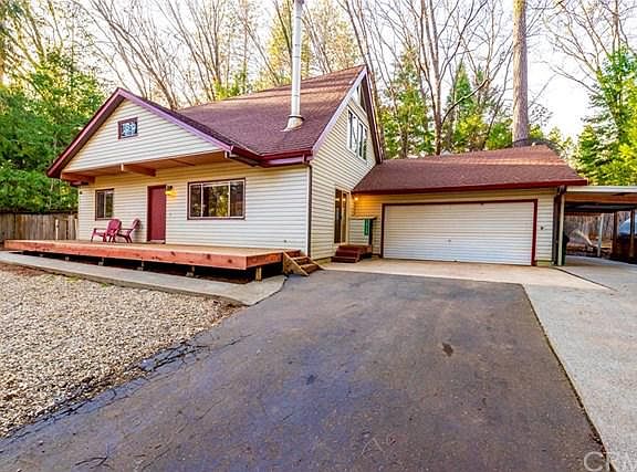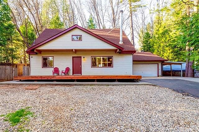 NESTLED IN THE TALL BEAUTIFUL PINES OF MAGALIA IS THIS MOVE IN READY CUSTOM HOME. NICE PRIVACY AS THE CHALET STYLE HOME WAS PLACED BACK OFF THE STREET. A 295 SQUARE FT. FRONT SITTING DECK WELCOMES YOU TO THE HOME. UPON ENTRY YOU ARRIVE IN THE LIVING ROOM W/ KNOTTY PINE TONGUE & GROOVE WOOD BEAMED CEILING, WOOD STOVE RESTING ON BRICK HEARTH, NEW CARPET & PAINT. THE KITCHEN IS OPEN TO THE LIVING ROOM OFFERING TILED FLOORS, DISHWASHER,MICROWAVE,OVEN/RANGE & NEWER SLIDER. THE MASTER BEDROOM OFFERS A BONUS DEN/OFFICE W/ NEW PAINT & CARPET. UPSTAIRS THERE IS A SECOND FAMILY ROOM WITH HIGH VAULTED CEILING, BEAUTIFUL WALL OF WINDOWS & NEW CARPET/PAINT & A ENTRY TO THE 5x17 BALCONY. BOTH GUEST BEDROOMS ARE SPACIOUS W/ VAULTED CEILING NEW CARPET & PAINT. THE GUEST BATH OFFERS STEP IN SHOWER, TILED FLOORS AND SOLID SURFACE VANITY. DOWNSTAIRS BATHROOM OFFERS TILED FLOORS, SOLID SURFACE VANITY AND TUB/SHOWER COMBINATION. THE OVER-SIZED TWO GARAGE OFFERS A 130 SQ FT. BACK SHOP AREA W/ BUILT IN SCREW & NUT ORGANIZERS. THERE IS ALSO A DETACHED 10x10 SHOP/SHED OR BONUS ROOM. ON THE SIDE OF THE GARAGE IS A COVERED CONCRETE AREA MEASURING 11'x24'. THIS HOME IS READY FOR A NEW OWNER.