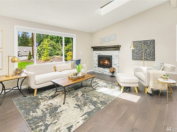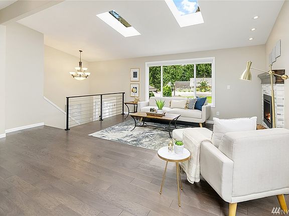 Gorgeously updated home in Briarwood community. Kitchen with Silestone counters, new cabinets, engineered hardwood floors, stainless steel appliances, and Kohler fixtures. Skylights and vaulted ceilings make living area light and bright. Downstairs rec room with cozy fireplace is wired for surround sound. New roof, new paint inside and out, new trim and doors, and new deck. Relax on the raised deck looking out onto the professionally landscaped yard.