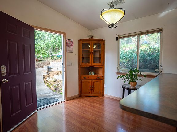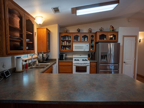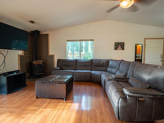 Beautiful home with VIEWS & MINUTES FROM THE LAKE!! NO MONEY DOWN USDA LOAN APPROVED! 2 large bedrooms, 2 full bathrooms freshly painted. Vaulted ceilings in large living room! LOW UTILITY COST! Open kitchen w/ custom cabinets & gas stove. Big master w/HUGE closet, vinyl double paned windows, Central A/C, indoor laundry, circle drive with RV hookups, almost half acre, mature shade trees everywhere