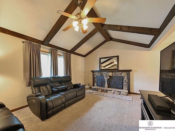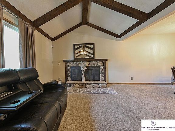 Hard to find 3 bed 3 bath 2 car garage home in Millard! Great location on a corner lot backing to walking trails & common area. Newer carpet throughout, vaulted ceiling, 2 fireplaces, large living areas on main floor & basement w/ an extra non-conforming bedroom. Kitchen offers good counter space, tons of cabinets storage w/ SS appliances .Large primary bedroom w/ 3/4 bath. Roof replaced 3 years ago & windows have been replaced throughout. Landscaped front/backyard w/ 6ft privacy fence & large 16 x 14 deck perfect for summer nights! Walking distance to parks and schools! Don't miss this one!!