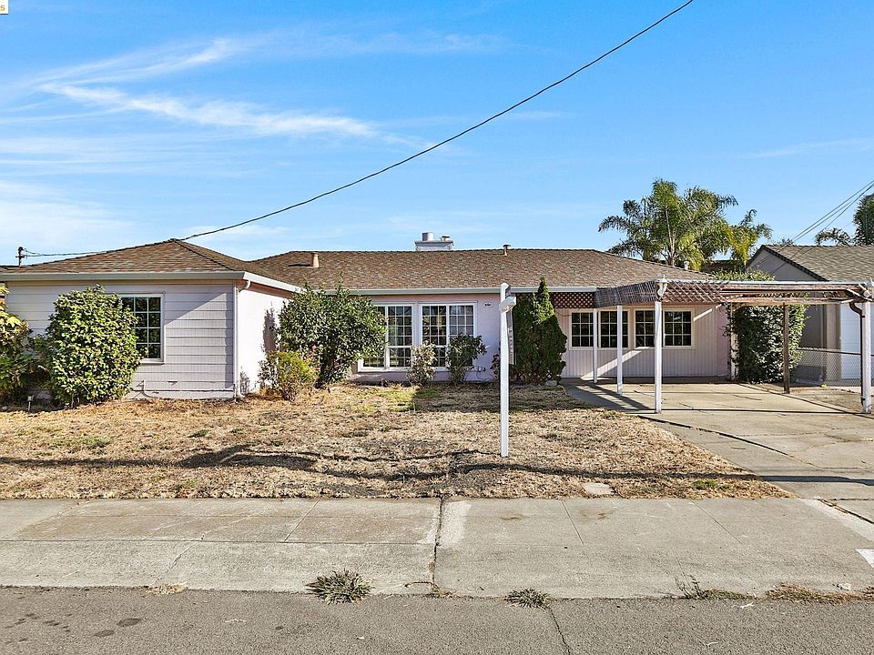 Great Potential in Prime Cul-de-Sac Location! Discover the possibilities with this spacious 3-bedroom, 1-bath, single level home nestled on a large 6,175 sq ft lot in a quiet cul-de-sac with no through traffic—ideal for those seeking privacy and a peaceful setting. With 1,477 sq ft per public records, this home boasts ample room for living and entertaining, featuring a cozy living room with warm fireplace plus a bonus family room. This home’s solid fundamentals include dual-pane windows and a roof in good condition, providing a great starting point for updates and improvements. The expansive backyard offers plenty of space to create your dream outdoor oasis, is fully fenced and includes a detached 80 sq ft storage shed. Situated near BART, this home provides easy access for commuters, while nearby shopping, grocery stores, and restaurants add extra convenience. Near the amazing Washington Manor Park and pool. Embrace the opportunity to transform this house into your ideal home and create lasting memories in a great neighborhood. Don’t miss out on this rare find in an unbeatable location! LOW PEST $1200. As your agent about census tract loan incentives! Some rooms virtually staged.