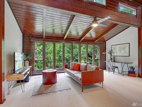Kitchen with quartz counter tops, subway tile back splash, shaker style cabinets, stainless steel appliances. Remodeled master and hall bath. Vaulted ceilings and skylights keep living area light and bright. Newly painted inside with newer carpet and wood looking laminate flooring. Detached 2 car garage with additional attic storage. Cul de sac location. Covered deck looks out onto lawn with landscaped privacy. Scholastically superior Issaquah schools.