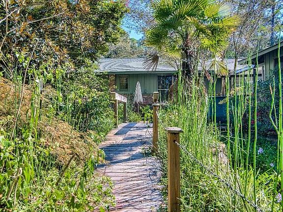 Get 2 homes for the price of 1! Super sturdy VINTAGE RANCH HOME with a contemporary guest house directly on the Magnolia River. The main house is a 3/2.5 and is 2465 sq. ft. has an enormous farm kitchen with loft ceiling and open beams. Primarily hardwood floors throughout. 2 fireplaces - wood burning in the family room and gas in the master bedroom. New roof in 2014, screened sleeping porch on west wing, covered carport with metal roof, atrium area that opens onto patio, water ponds (Once stocked with Koi), septic system, large garage with storage. The GUEST HOUSE, built in 2001, features 2 bedrooms and 1 bath plus a loft, HUGE screened porch and HUGE deck overlooking the river. BOAT SLIPS with lift underneath the guest house. 1001 sq. ft. Lush landscaping - while a bit over-grown, offers a gardener's paradise. Consider this: Perfect location for an Artist-in-Residence program. Provide an artist the opportunity to live and work outside of their usual environment. Provide them with time to reflect, research, and be creative. Step back in time and let the River speak to them...or to you!