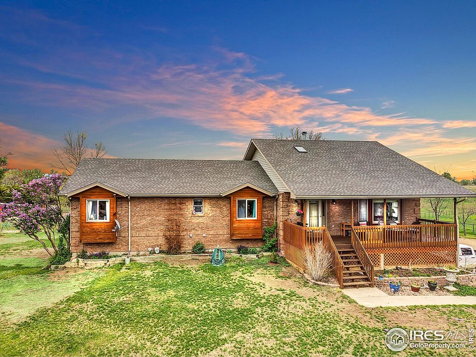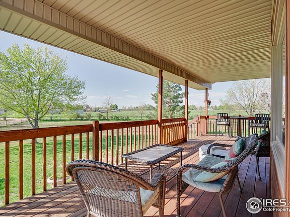 Peaceful and private ~5 Acre county oasis close to Longmont shopping and Mead schools. RARE Water Rights are included. Open views of the front range from your back deck. Large comfortable bedrooms with full shared bath. Primary has en-suite. Sturdy, functional, safe and attractive pipe and cable fencing for horses/cattle along with separate pens appropriate for animals from chickens to goats throughout the property for turn-key hobby farm or 4-H paradise. Vegetable gardens and outbuildings support your country lifestyle. Walk out basement opens to your expansive back yard big enough for a swimming pool. Enjoy crisp evenings by the outdoor firepit.