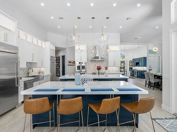 This elegant one of a kind home in the heart of Wellington WILL NOT LAST LONG! The moment you walk through the grand front entrance, you are greeted with towering ceiling heights and a picturesque view of the pool that will take your breath away. This expansive beauty, fully remodeled in 2021, boasts 6 bedrooms and 6 bathrooms on a single floor and is truly an enormous residence. The open and modernized floorplan coupled with 2 huge kitchen islands and a sleek wet bar lounge lends itself to luxury entertaining at its finest. The gorgeous high end kitchen is fitted with SMART appliances including separate 36'' Monogram refrigerator and freezer, French door Monogram double ovens, and a Fulgor Milano induction range. Nestled on a 1.5 acre property in a quiet cul-de-sac, this distinctive... masterpiece is in a class by itself. Equally impressive on the exterior, there is a massive 3000sf screened in patio with pool, hot tub and multiple covered areas for lounging, grilling, eating, or just relaxing poolside. To top it off, there is a tailor-made private sports field located on the side of the home covered with Celebration Bermuda turf and a Full size 8' soccer goal. This is the perfect place for your kids and grandkids to practice any of their sports, or even set up your cornhole boards! The entire property is bordered with an Invisible Pet Fence to ensure your pets will remain safe on your premises. The home is located in the Best school Zone in Wellington and only minutes from all the Equestrian venues. School drop off is only a golf cart ride away. If this amount of space isn't enough, there is plenty of room to build a separate structure or even add your own private pickleball court. The options are limitless, so act fast!