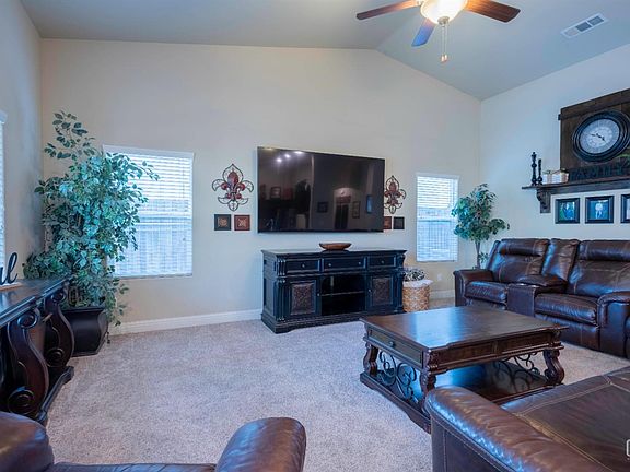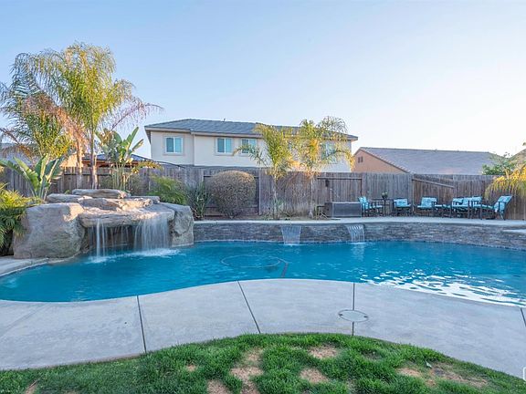 Welcome home to this warm and inviting retreat in Northwest Bakersfield! This spacious 4 bedroom, 3-bath + OFFICE beauty offers side yard parking, owned solar and a pool for comfort and style. One of the bedrooms has its own ensuite.The home features neutral tile and plush carpeting throughout. The heart of the home is a generous gathering space with soaring vaulted ceilings, perfect for family and friends. The gracious kitchen is a chef's delight, with rich stained cabinetry, granite countertops, a full custom backsplash, and a sleek stainless steel appliance package, including a modern gas range and hood. The peninsula prep space with an apron sink and seating flows effortlessly into the sunny dining area, which overlooks a stunning backyard oasis. Enjoy a sparkling custom pool with a waterfall, upper and lower deck sunning areas, and lush grassy space with side yard parking.