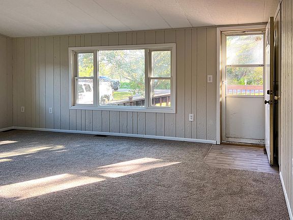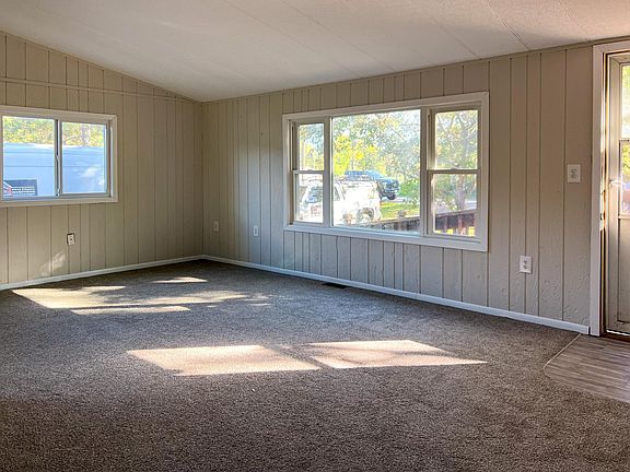 New septic tank has been installed. Clean, bright, 3 bedrooms, 1 bath home with all new carpeting on 1 acre lot with 2 car garage, separate shop and shed, manufactured home, financing with 20% down or cash, partial basement with mechanicals, shop has electric but not heat (although setup for heat).