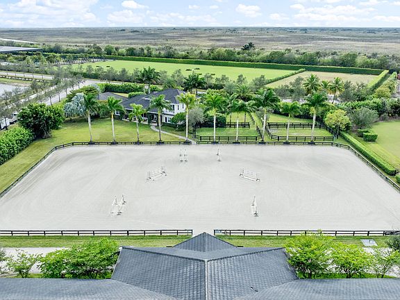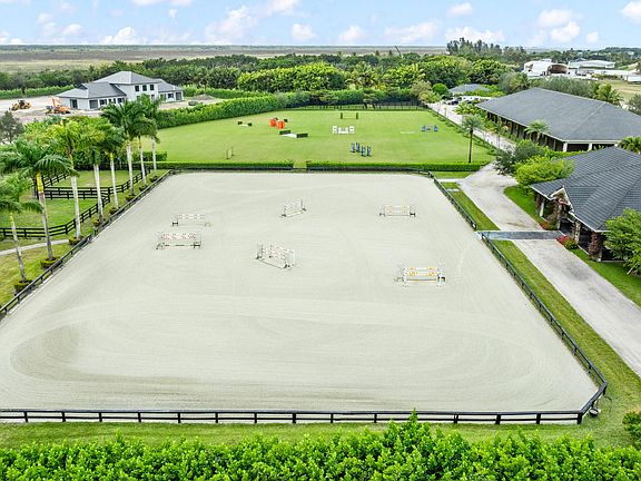- Horse amenities: Boarding Allowed, Bridle Path/Trails, Center Aisle, Covered Ring, Feed Room, Fly System, Grass Field, Grooms Quarters, Lounge, Office, Paddocks, Regulation Dressage, Ring, Stable, Tack Room, Wash Rack(s), Water & Electric, Stall, Barn