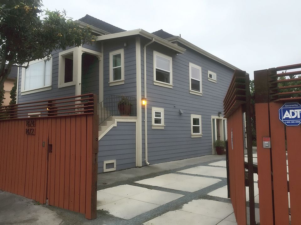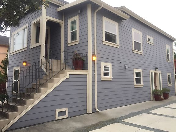 Welcome Home. Simply exceptional renovation of a gorgeous duplex/single family home in Oakland on the Emeryville border! The owners have paid fine attention to detail as this home offers a luxurious new kitchen and baths with abundant use of elegant natural stone, ceramic tile and Bandera Elm hardwood floors. 3 bedroom, 2 bath upper unit and 2 bedroom, 2 bath lower unit. This nearly new home offers custom cabinets, stainless steel appliances, new electrical, new plumbing, dual pane windows, new exterior and interior paint, new tankless water heaters all on a huge double lot of approximately 5,000 square feet! Peaceful orchard in the backyard with lemon, apple and fig trees. Side of the lot can house up to 4 cars. The lower unit has polished concrete floors and would be terrific as a studio, office or artist’s work space. Nearly 2,300 square feet! Seller’s List of Improvements forStructural and Building Systems: • Energy efficient on-demand tankless water heating system for both units.• Energy efficient hyrdonic radiant heating system installed within the concrete floor of bottom unit.• Brand new plumbing systems with caste iron and copper pipes. No plastic abs pipes.• Brand new electrical systems with separate electrical meters for both units.• Whisper quiet and highly energy efficient Panasonic ventilation fans in all bathrooms.• New skylight installed in the top unit kitchen.• New exterior water proofing and siding on exterior of the entire house.• New and existing double-pane windows throughout entire building.• New roof and gutters comprised of 30 year dimensional Class-A fire rated shingles.• Custom designed back porch and front fence constructed from rot resistant redwood and pressure treated wood.• New sheetrock and insulation for both units. • New irrigation system installed in front and back yards. • New reinforced concrete driveway squares.• New framing for portions of the interior walls throughout the entire house.• New anchor bolts added to existing concrete foundation.• All work on the building done with permits and inspected by the City of Oakland. Seller’s List of Additional Improvements: • New Bandera Elm hardwood floors in the upper unit.• New concrete floors in the bottoms unit.• Upstairs kitchen entirely redone and updated with custom made maple cabinetry, imported polished carrera white marble countertops, stainless steel appliances, and a drop-in sink.• All bathrooms completely redone and updated with imported Italian honed white marble or granite counter tops, Kohler bathtubs, new sinks, new toilets, new fixtures, and custom made vanities. • New doors and door hardware throughout the entire building.• New low-voltage 4 inch recessed lighting system throughout both units.• Fresh interior and exterior paint.• Custom built shelves in office/small bedroom in the upper unit.