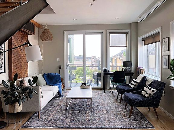An elegantly renovated penthouse-floor, one-bedroom unit in a boutique condominium atop Meridian Hill Park - unlike any other apartment in DC. Located steps away from Meridian Hill Park, the 14th Street restaurants & shops, and sandwiched between the charming Adams Morgan and Logan Circle neighborhoods, this apartment is a gem with over 9-foot ceilings, hardwood floors, tons of light, and views of the Washington Monument and Meridian Hill Park. The apartment features two incredible outdoor spaces: a large balcony on the main level, and an enormous private rooftop (700 square feet!) with an irrigated garden, accessible through an architecturally stunning stairway at the heart of the apartment. Inside, it has been lovingly updated with no expense spared. Updates include the following and more: a luxurious, spa-like bathroom with a massive Kohler soaking tub, a stand-alone shower, and high-end fixtures and tile; exposed brick walls in the living room and bedroom; custom window shades throughout; custom bedroom closet; full-size kitchen pantry; electric tankless water heater; Farrow & Ball paint used throughout the apartment; energy-efficient LED lighting Words and photos do not do this listing justice. Come on by and imagine your own private retreat in the center of the city, but above it all.