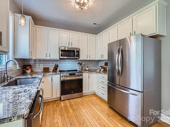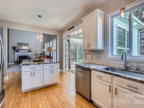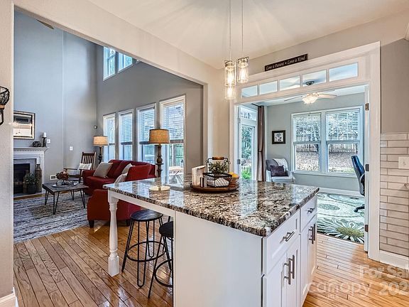 This beautiful home sits on a quiet cul-de-sac in desirable Highland Creek (Cabarrus County). Home has a dream kitchen w/ a huge island offering extra storage, granite countertops, tile backsplash, & a pantry. The two-story great room is flooded w/ natural light & showcases a warming fp. An informal LR provides a versatile space—ideal for a music room or home office. The dining room is ready for entertaining. A bright & airy sunroom invites you to relax, w/ sliding doors leading to a patio w/ a pergola, creating the perfect indoor-outdoor retreat. Upstairs, the primary suite boasts a vaulted ceiling & an updated en suite bath featuring dual sinks w/ quartz, vinyl plank flooring, relaxing garden tub, & separate shower. Two additional bedrooms offer ample closet space & share a full bath. The second-floor laundry room adds convenience to everyday living. The fenced backyard is perfect for pets or outdoor entertaining. NEW ROOF BEING INSTALLED
