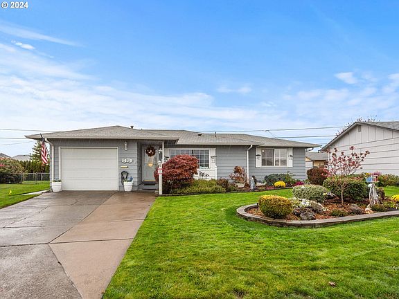Beautifully maintained and move-in ready home in Woodburn Estates! Original hardwoods in 1 bedroom and under the carpet in the living and dining room. Spacious primary bedroom includes walk-in closet and en suite bathroom with walk-in shower. Kitchen brightened with garden window that looks out to fully fenced backyard. Covered back patio extends living and relaxing to the outside! 1 block from Senior Estates park. Neighborhood amenities include golf, swimming pool, pickle ball and much more! Conveniently located close to I-5, the Woodburn Outlets, restaurants, shopping and medical care/facilities!