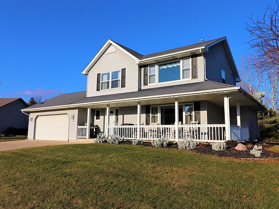 Spacious & Comfortable on nearly Half Acre. Home sits on .44 acres with trees, large yard, backyard patio, and front covered porch. A substantial Master Bedroom with walk-in closet & Master Bath along with two ample sized bedrooms & second full bath for guests and family. Wonderful sized living room and large windows letting in the natural light. Kitchen opens to a Dinette Space, Sliding Door to the Backyard & large 41x24' Patio, Office Space/Formal Dining Room and half bath. Easy access from attached garage to kitchen. Basement is nearly finished with wet bar and large 26x11' Rec Room along with additional rooms for extra storage. This Happy Home is perfectly located with a very short drive to both Burlington & Lake Geneva and walking distance to White River Trail & Restaurants