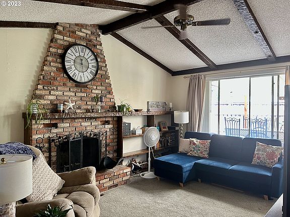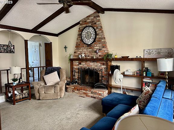 - Features: Beamed Ceilings, Builtin Features, Ceiling Fan, Fireplace, Vaulted Ceiling, Wallto Wall Carpet