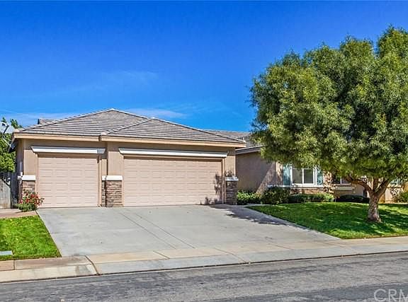 Gorgeous, freshly updated home located in the family-friendly Sundance neighborhood of Beaumont. Open concept floorplan with a large great room combining kitchen, living, and dining spaces. The nicely sized family room offers a cozy gas fireplace, built-in shelving, media alcoves, a ceiling fan, and is open to the expansive kitchen complete with oak cabinetry, formica countertops, a center island, a built-in computer workstation, breakfast nook area, and access to the rear yard. Many upgrades throughout the home including brand new interior paint, recessed lighting, neutral tile flooring, wood blinds, and brand new neutral carpeting. Down the hall you'll find an office/possible 5th bedroom with a ceiling fan as well as all four of the bedrooms. The three secondary bedrooms are nicely sized with ceiling fans, large closets, and have a shared bathroom with double sinks and shower/tub combo. The master suite is large and open and also features a ceiling fan as well as an ensuite bath with a soaking tub, glass-enclosed shower, his and hers vanities, and oversized walk-in closet with custom built-ins. Low-maintenance private rear yard with a large patio, grassy area, and mature landscaping. 3 car garage. Conveniently located to nearby schools, shopping, freeway access, and a short walk to Mountain View Park.