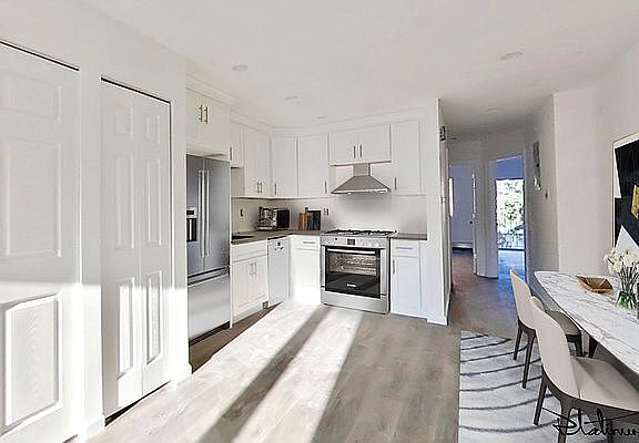 Move into this completely renovated 3 Bedroom dream home today! Relax inside your immaculate 3 Bed 2 bath NO FEE apartment in one of BK's fastest growing neighborhoods. This building is renovated from top to bottom and parking is available on site. The open kitchen shines bright with brand new stainless steel appliances and dishwasher. Washer and dryer are in unit. Be the first to enjoy completely renovated bright tiled bathrooms. And organize all you want with closets galore. Brilliant white walls compliment the sleek new hardwood floors. Every oversized window has been replaced, allowing sunlight to stream into your home year round. East facing living room will soak up sunrises. A west facing balcony provides rare private outdoor space and sunsets every night. Recessed lighting shines throughout. Air Conditioning in every room allows you to dial in the temperature. 2 and 5 trains zoom you into Manhattan and run up express both sides of the island. You'll be only stops from Prospect Park. Take in shows at the historic Kings Theater. Enjoy the area's nightlife and incredible eats at classics like Rogers Garden, Jen's, Peppa's, and The Farm on Adderley. A bevy of supermarkets, and fresh veggie bodegas will make your chef's heart sing. Nearby gyms and retail include Blink, Target, Flatbush junction and all the businesses serving Brooklyn College. Standing firmly in the heart of Flatbush, this proud, three story building is waiting for you to call it home. Call, text or email today to schedule your private showing. Images are for illustrative purposes only