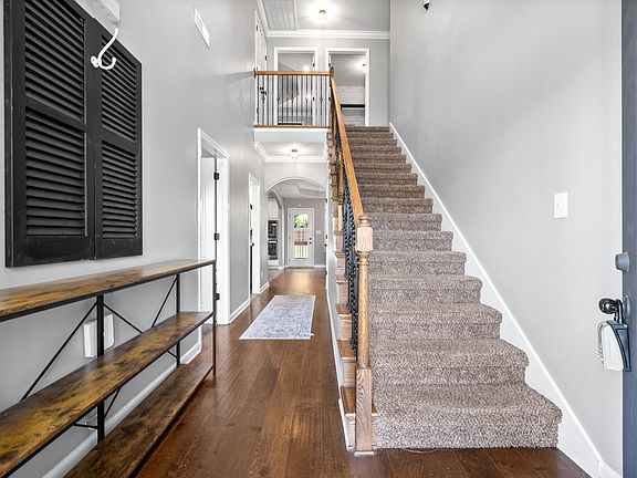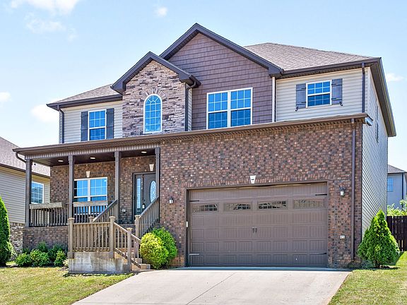 Check out this 4 bed and 3 full bath home nestled on the Northside of Clarksville, close to Fort Campbell, shopping, and Exit 1 for a commute to Nashville. This home features an open concept downstairs with a covered deck off the dining area and a covered front porch, great for entertaining! Modern kitchen with double ovens, an island, and large pantry. A nice sized bedroom downstairs perfect for guests with a full bath next door! Upstairs features a large laundry room conveniently located between the bedrooms. The primary bedroom has two walk-in closets, a mosaic walk-in shower and jetted tub. Down the hall two cute bedrooms share a Jack and Jill bathroom. A larger bonus room with storage can be used as a 5th bedroom.
