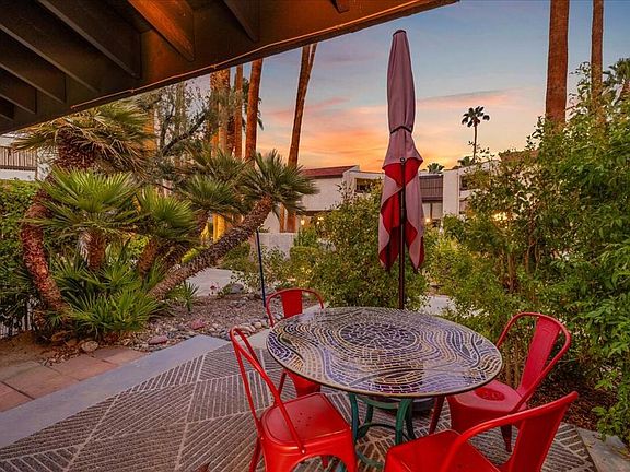 Discover resort-style living at Biltmore Phase II in South Palm Springs. Rarely available, single-story condo with Cathedral-style ceilings overlooking pool & spa. Adjacent to popular Deepwell neighborhood, this stunningly remodeled condo comes with a 1-car garage. Ground-level unit with private patio. Relax & enjoy serene garden views. Interior updated with attention to detail--fresh, modern finishes & fixtures. Open concept floorplan. Large living/dining area. Kitchen features stainless appliances, custom wood cabinetry, designer backsplash & easy-care countertop. Spacious primary with large closets & spa-like bath. Bathroom is accessible from hallway & primary. Tile flooring throughout with smooth finish ceilings. Custom light filtering window coverings. New appliances: stove, dishwasher, refrigerator, and in-unit washer/dryer stack. Newer: HVAC; front door (with mod crackle glass inserts); dual-pane windows & sliders; bath vanity, storage & shower conversion; garage overhead door; patio outlets & water heater. World-class attractions are just outside your door--ACE Hotel, Villa Royale, Koffi, iconic Downtown Palm Springs, hiking trails & more! Land is on lease by private lessor family (not a Native American land lease). This is the IDEAL refreshed condo to call HOME. Stop searching and START living!