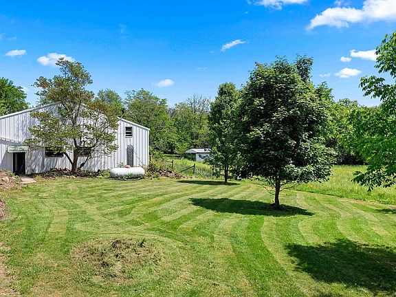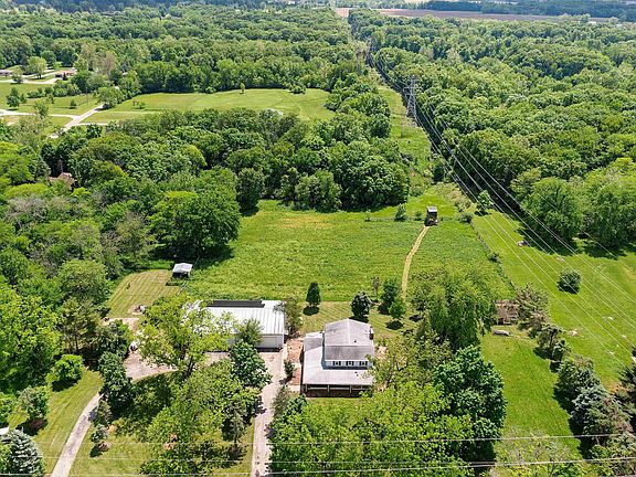 Room for all your hobbies with this terrific 5 bedroom, 3.5 bathroom home on 5 acres in Washington! The 50x80 outbuilding has room for 4 cars, plus 8 horse stalls and tack room. Located within walking distance of 600 acre Farmdale Park with miles of scenic riding and hiking trails. Enjoy the many fruit trees, plant a huge vegetable garden, hunt whitetails, keep chickens, and unwind on the huge wrap-around porch. The main floor of the house features a large eat-in kitchen, 2-story great room with wood burning fireplace, formal dining room, primary bedroom, laundry room, and 2 full bathrooms. 3 additional large bedrooms and full bathroom upstairs. Recent updates include new flooring, finished basement, A/C unit, deep private well, fresh paint, and solar panels. Upgraded windows, plumbing, electric, and septic. This property offers a little bit of everything in a great size!