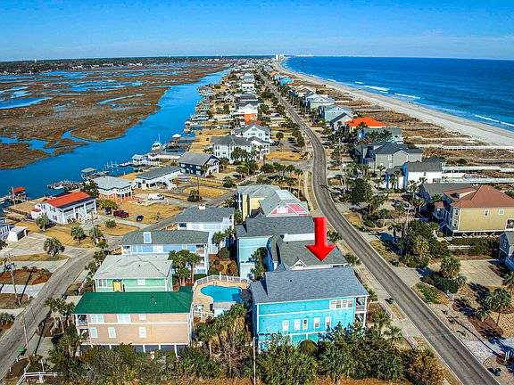 Such an amazing opportunity for you to own a beach house that is in the best location in Murrells Inlet! This 6 bedroom and 5.5 bathrooms has so many upgrades! When you enter the beach home, you will notice the custom heart pine wood floors throughout the main living area and all of the bedrooms. The massive kitchen is the centerpiece of the home and a perfect space for entertaining and cooking. It features custom granite countertops and an open concept that overlooks the main living area. When you walk out onto one of the two balconies to take in the breath-taking views, you will feel the warm ocean breeze off of the Atlantic Ocean. Now relax in the expansive owner's suite and crack open the sliding doors to the private balcony off of the bedroom to watch and hear the ocean waves. The owner's suite bathroom features granite countertops, double sinks, a whirlpool tub, and a stand-alone shower. All of the remaining guest bedrooms are large and provide lots of comfortable space. The top level is quite the bonus space completes with a bonus room that can be used for game night, kid-cave, man-cave, or an office with a view of Murrells Inlet. You can see the Marsh Walk on the opposite side of the Inlet. There is also a full bedroom and bathroom upstairs. On the ground level, this property features a separate two bay garage that can fit several vehicles and has a spacious outdoor shower to wash away the sand after your beach adventures. This home is located in an ideal spot at the end of the community of Seaport Village and near the community pool. This HOA includes building and flood insurance and maintains the community pool so you can relax when you visit your beach home. This home has great short-term rental potential. Make sure to put this on your list of beach homes to view with your Realtor today!