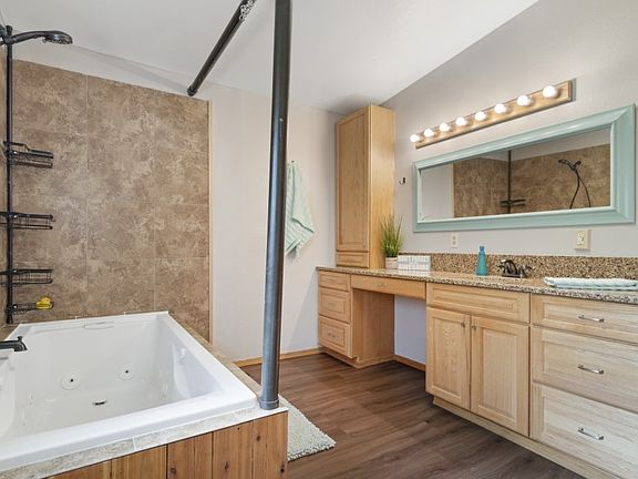 Sitting on 3 parcels totaling 4.6 acres, this 2246 sq ft, 4 bd, 2 bth home has a master on the main & a remodeled kitchen ft spacious granite counters, upgraded cabinets w/ pull out shelves, an abundance of storage space, & stainless appliances that include 2 ovens, a perfect kitchen to entertain in! The laundry room is complete w/ a folding counter & storage. Enjoy the beautiful view from your wrap around deck or enjoy working in the giant 30x24 shop that includes 2 lg lofts for extra storage!Text "PNWHOME" to 59559.