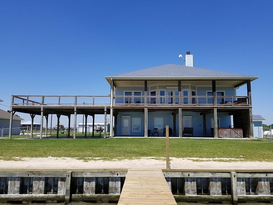 This property is what coastal living is all about! Imagine sitting on the open air upper deck or in the spa under the covered deck overlooking beautiful San Antonio Bay. This property has two large outdoor entertaining areas, new bulkhead, pier, fish cleaning station and fenced yard. There is 30 Amp hookup for RV at the pump/storage house. Upstairs offers open concept living room with propane fireplace, dining/kitchen area with breathtaking views. The master suite has windows on two sides with unobstructed view. The custom master bath offers double sinks, granite countertops, oversized walk in shower and large closet. Custom tile work on the floor round out this dream bath. Three bedrooms and guest bath complete the upstairs. Enclosed downstairs is a large bunkroom to accommodate guests. Full size refrigerator, bunk area, sitting area and full bath could be used for income producing property. List price reflects market value, disregard any third party estimates of value.
