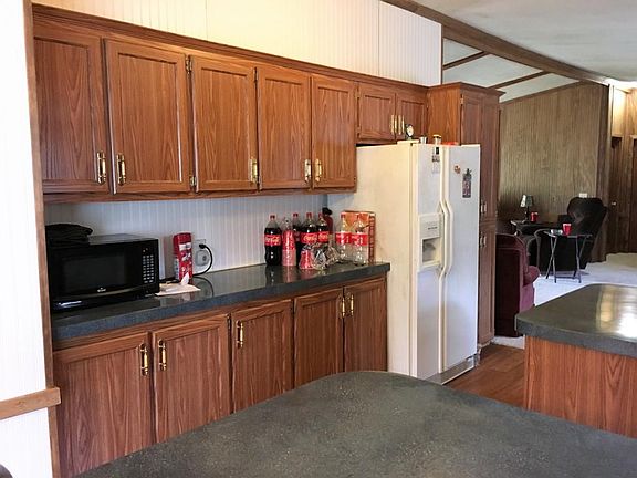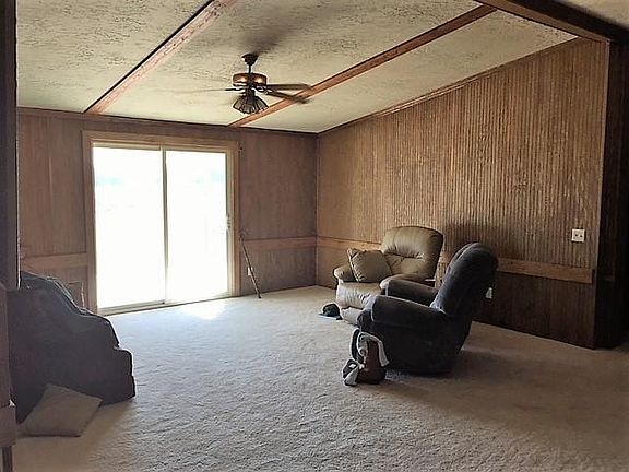 Move In Ready! REMODELED mobile home with rustic cabin-like interior. 3BD/2BA mobile home sitting on 2.04 acres boast new carpet & bamboo flooring with new stone underpinning large covered back porch with new sliding glass doors, dining room, eat at bar, additional dining area or office space, pantry, laundry room, all plywood subflooring. Master bath includes soaking tub, double sinks and stand alone shower. Double detached carport and storage/shop area wired with lights & plugs. Master bedroom suit to stay with home. Storm shelter shared with neighbors on property line. Taxes shown are county taxes estimated with homestead. Current owner exempt. Agents see private remarks. All information is subject to verification. Deemed reliable but not guaranteed.