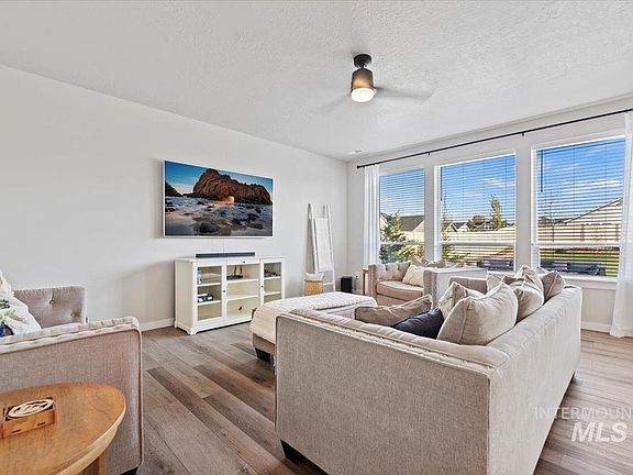 Don't miss this beautiful home in SW Meridian! It is a true gem, offering modern elegance and thoughtful enhancements throughout. The stylish kitchen and bathrooms boast sleek quartz countertops, soft-close drawers, & designer lighting, while durable vinyl plank flooring flows seamlessly through the main living areas. Inside, natural light fills every room, creating a bright and inviting atmosphere. With three bedrooms and a bonus room upstairs, plus a versatile fourth bedroom or office on the main level, this home offers flexible living spaces to suit your needs. There is over 30k in premium landscaping and upgrades, including full fencing, lush sod, an automatic sprinkler system, an abundance of trees, pavers, decorative rock, and an expansive extended patio—perfect for outdoor entertaining. Enjoy endless summer shade in the spacious, north-facing backyard! Don’t forget the oversized garage—providing plenty of extra storage! This move-in-ready home is the perfect blend of style, comfort, and functionality!
