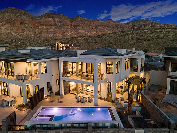 Inside, the modern open-concept living space boasts 10'-12' high ceilings, porcelain countertops, Bosch appliances, and large walk-in showers allowing you to feel pampered throughout your stay. The walk-out basement offers additional space to unwind, making it the perfect getaway With a short drive to Sand Hollow Reservoir and hundreds of off-roading trails, outdoor fun is never far away. Located just 40 minutes from Zion National Park or Snow Canyon State Park, 1 hour from Brian Head, and 2 hours from Bryce Canyon or Lake Powell this home is perfect for exploring the best of Southern Utah.