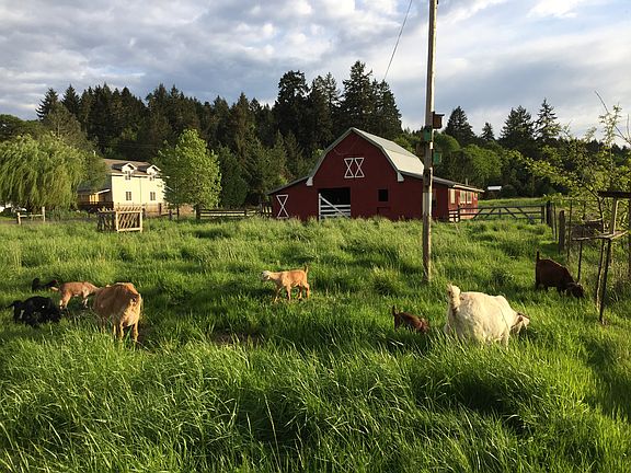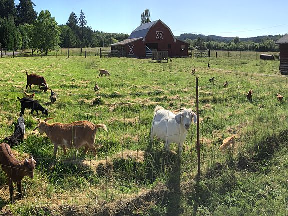 Country home on approx. 6.9 acres with 4 separate tax lots. Includes barn, shop, garden shed, greenhouse, fenced and cross fenced pasture, large scenic pond with water rights, creek, fruit trees, and more. One level ranch style home offers open living room with fireplace. Original oak hardwood floors throughout. Dining area off the living room with slider leading to covered patio. Country kitchen with picturesque view. Attached double car garage and separate shop building approx. 20x24. Classic 2-story red barn with tons of character, ample room upstairs for hay storage. House and outbuildings need some upgrades and repairs, but overall solid bones. Willing to show the house to serious buyers with pre-approved financing. Also willing to work with buyers agents and offer 3% commission. Sold as-is no warranties expressed or implied and there may be inaccuracies in the listing. Buyer to perform all necessary procedures and inspections to their satisfaction.
